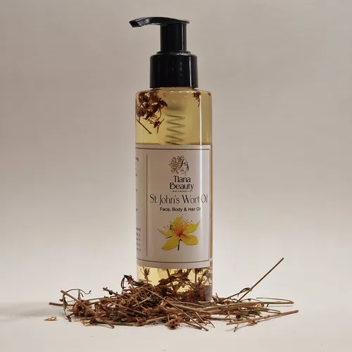 - St. John’s Wort dry flowers infused in Sweet almond oil