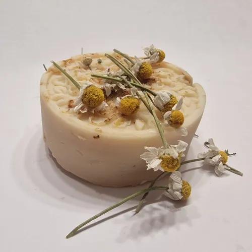 Chamomile soap offers numerous skin benefits, thanks to its anti-inflammatory, antibacterial, and antioxidant properties. It helps soothe irritation, reduce redness, and promote healing—making it ideal for conditions like acne, eczema, and sunburn. Additionally, it hydrates the skin, balances sebum production, and may help improve the appearance of hyperpigmentation.